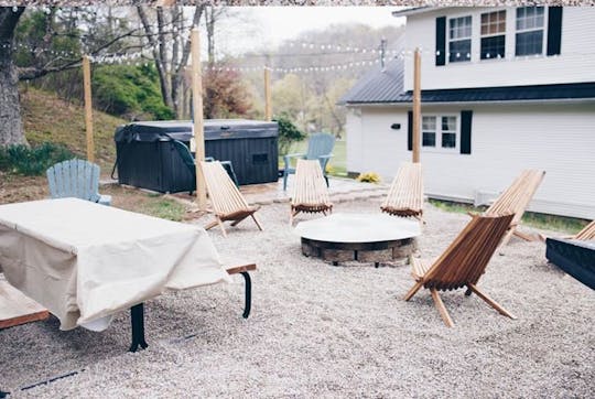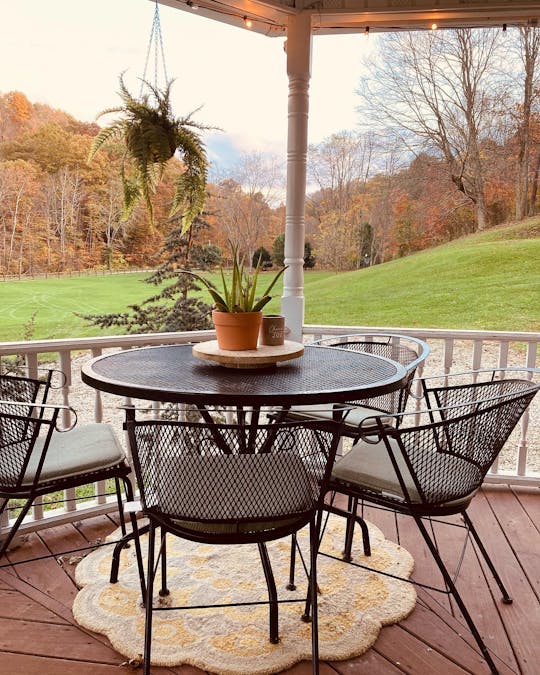 Blue Creek Hideaway is a newly remodeled home tucked away on 66+ acres on Blue Creek Rd. Take in our charming views on our amazing wrap around porch in one of our porch swings or hammocks as you sip your coffee or tea and enjoy the quiet and beautiful scenery. Curl up and read a book or enjoy our hiking trails, hot tub, fire pit or game room.